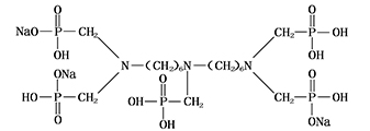 別名:二己烯三胺五亞甲基膦酸鈉 分子式:C17H44-xO15N3P5Nax 相對(duì)分子質(zhì)量:約731 結(jié)構(gòu)式: 一、性能與用途 BHMTPH·PN(Nax)是高效的螯合型阻垢劑,對(duì)碳酸鹽垢和硫酸鹽垢具有良好的阻垢效果。在較寬的pH范圍和120°C高溫下有極佳的水溶性和熱穩(wěn)定性,對(duì)鈣離子容忍度高。BHMTPH·PN(Nax)是油田水處理中的緩蝕阻垢劑,工業(yè)循環(huán)冷卻水和鍋爐水的阻垢緩蝕劑。 二、技術(shù)指標(biāo)