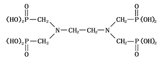 別名:乙二胺四亞甲基膦酸 分子式:C6H20O12N2P4 相對分子質(zhì)量:436 結(jié)構(gòu)式: 一、性能與用途 常溫下EDTMPA為白色結(jié)晶性粉末,熔點215-217°C,微溶于水,在室溫下溶解度小于5%,易溶于氨水。 EDTMPA具有很強(qiáng)的螯合金屬離子的能力,與銅離子的絡(luò)合常數(shù)是包括EDTA在內(nèi)的所有螯合劑中最大的。EDTMPA為高純試劑且無毒,在電子行業(yè)可作為半導(dǎo)體芯片的清洗劑用于制造集成電路;在醫(yī)藥行業(yè)作放射性元素的攜帶劑,用于檢查和治療疾病;EDTMPA的螯合能力遠(yuǎn)超過EDTA和DTPA,幾乎在所有使用EDTA作螯合劑的地方都可用EDTMPA替代。 二、技術(shù)指標(biāo)