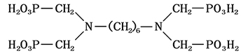 別名:1,6-己二胺四甲叉膦酸; 六亞甲基二胺四亞甲基膦酸 分子式:C10H28N2O12P4 相對(duì)分子質(zhì)量:492.3 結(jié)構(gòu)式: 一、性能與用途 常溫下HDTMPA為白色結(jié)晶性粉末,微溶于水,其溶解度在室溫下小于5%。 HDTMPA能抑制各種水垢(如碳酸鈣垢、硫酸鈣垢、硫酸鋇垢和氧化鐵垢等)的生成,但在水處理中主要用來(lái)阻抑硫酸鈣和硫酸鋇垢。在各種有機(jī)膦酸中,其阻硫酸鈣垢的性能最好,不僅阻垢率高,有效時(shí)間長(zhǎng),因此特別適用于油田的擠壓處理中。HDTMPA也可用于鍋爐水處理中。 二、技術(shù)指標(biāo)